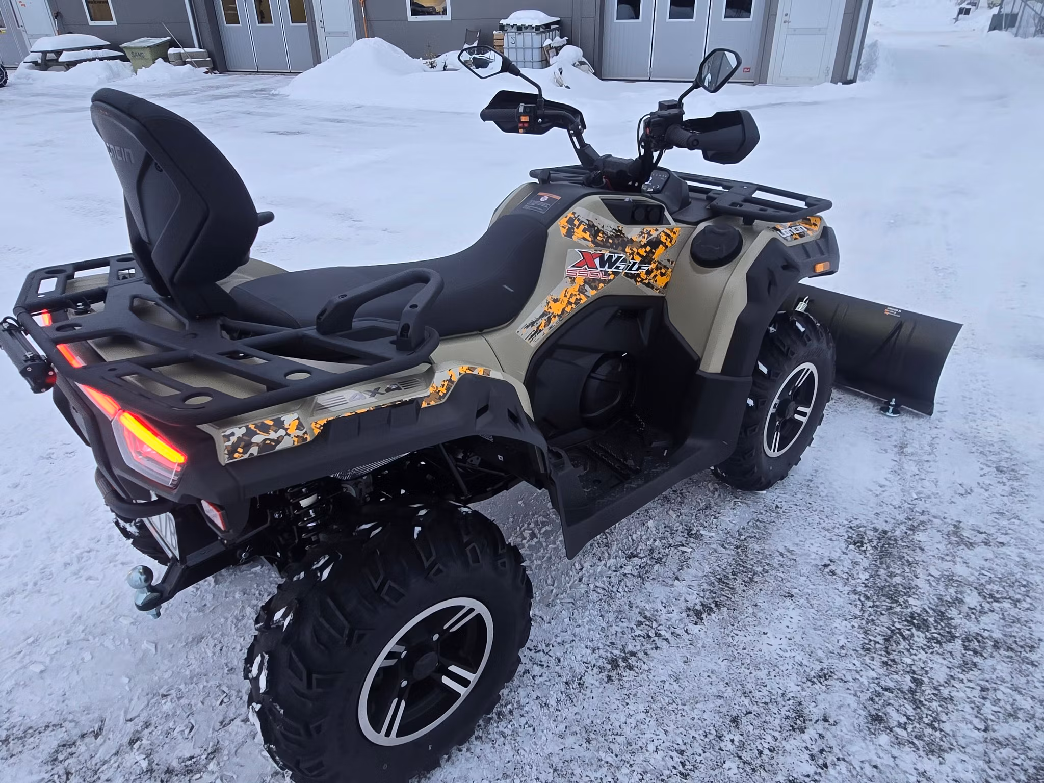 XWolf 550L ATV är utrustad med dragkrok (50 mm kula) och en 7-polig koppling med en imponerande dragvikt på 620 kg. Som standard är alla XWolf ATV-modeller utrustade med servostyrning (EPS) och en av marknadens bästa svängradier, vilket gör att du kan manövrera smidigt och bekvämt både i terräng och på väg.