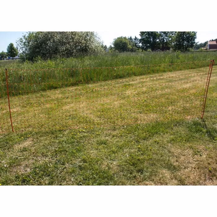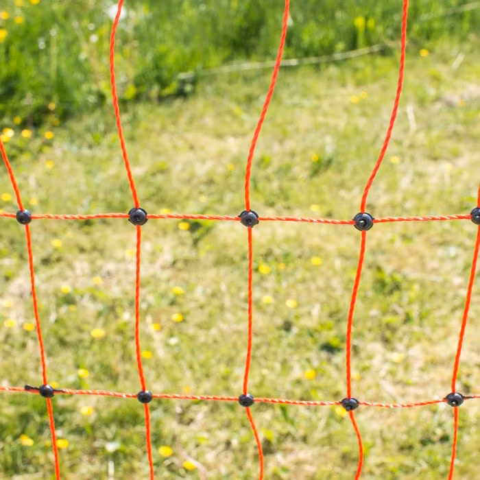 Fjäderfänät 50 m Fjäderfänät för inhägnader till bland annat höns, gäss och kalkon. Nätet är förstärkt med toppsträng och svetsade knutar. Maskbredden är extra liten i nätets nedre del. För extra säkerhet kan nätet kopplas till ett aggregat. Nätet levereras med stabila och synliga pinnar. Nätet kan även användas till lamm.