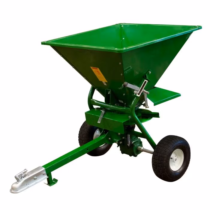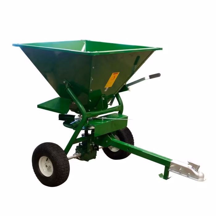 Gödningsspridare för ATV eller mindre traktor Saltspridaren är friktionsdriven via hjulen med noggrann inställning för exakt giva. Kan även användas som saltspridare till ATV. Noggrann inställning av givan och med möjlighet att justera dom fyra spridarvingarna för anpassning efter material. Omrörare i behållaren för jämn utmatning av mediat, lämplig för gödning, fröer, salt etc. ATV-spridaren har en generös behållarvolym på 160 liter – perfekt för effektiv spridning.