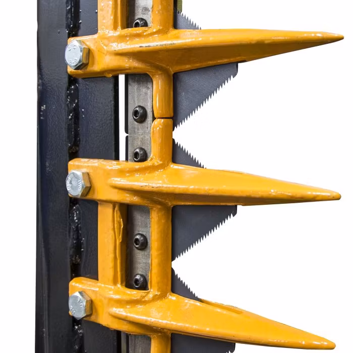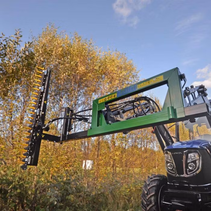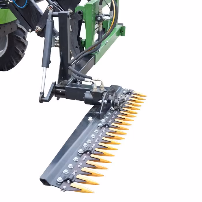 Hydraulisk häck- och kvistklippare för montering på frontlastaren • Arbetsbredd 140 cm • Med ställbar klippbalk från horisontell till vertikal • Skruvade individuella knivar på klippbalken • 6/2 Elventil – För val av klippvinkel och drivning av balk • Bultbart/utbytbart Eurofäste För klippning av häckar, rensning av sly i åkerkanter och för underhåll av vägar, skogsbilvägar. Häckklippen lämpar sig för klippning av blad, kvistar och mindre grenar. Klipper grenar upp till 35 mm. Öppnar snabbt upp en igenväxt väg där kvistar vuxit ut i körbanan och orsakar skador på lastbilar och andra fordon. En klippbredd på klippbalken om 140 cm i kombination med lastarens lyfthöjd ger en ren och hög korridor för fordon att passera i.