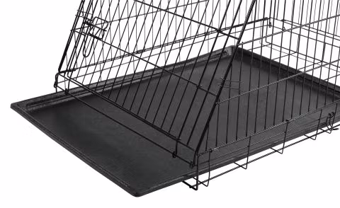 Hundbur med sluttande sidor, 2 dörrar, M • Perfekt till utställning, hotell eller i hemmet • Lätt att fälla ihop till en portfölj • Sprutmålad metall • Plastbotten som är lätt att rengöra • 2 dörrar • Svart • L x B x H 75 x 52 x 61 cm
