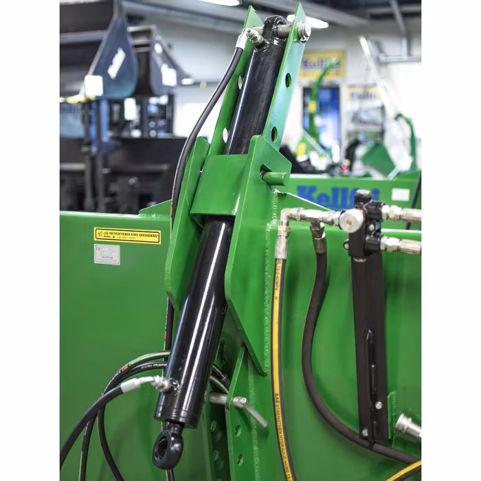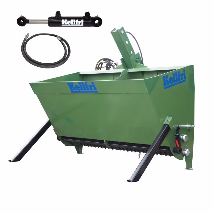 • Snabbtömningsfunktion Kellfris traktormonterade sandspridare har ett stort användningsområde. Spridaren lämpar sig för såväl halkbekämpning med olika typer av material som utläggning av spån och flis på motionsslingor o dyl eller dressning av grönytor. Spridaren fungerar bäst med torr, krossad sten eller grus/sand som består av liknande material, 2-8 mm i storlek. Kan även användas till både lite större och mindre material. Med självlastningskit som standard, innehållande hydraulcylinder samt slangar vilket gör spridaren självlastande direkt ur hög. Vid traktormontering sköts lastningen enkelt och effektivt från traktorns förarpanel genom att hydrauliskt fälla spridaren bakåt. I nedfällt läge backar man sedan in i sandhögen, lyfter tillbaka sandspridaren i arbetsläge och behållaren är fylld så att spridning kan påbörjas. Hydraulisk utmatnings- och omrörarvals med steglös hastighet ger ekonomi och gott resultat på alla underlag, fjädrande bottenklaffar medger spridning av ojämna fraktioner och störningsfri gång. Kraftig konstruktion, genomtänkta detaljer och flera arbetsbredder, till rätt pris. Till sandspridaren åtgår det ett enkelverkande, retur och dubbelverkande hydrauluttag på traktorn. Sandspridaren levereras med fyra hydraulslangar med ½tums hane snabbkoppling, hydraulisk tryckstång och trepunktsfäste.