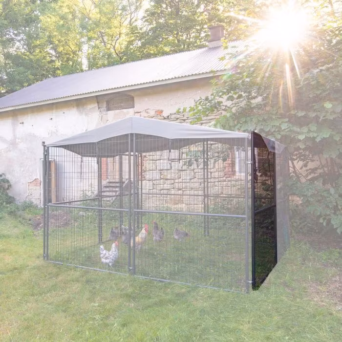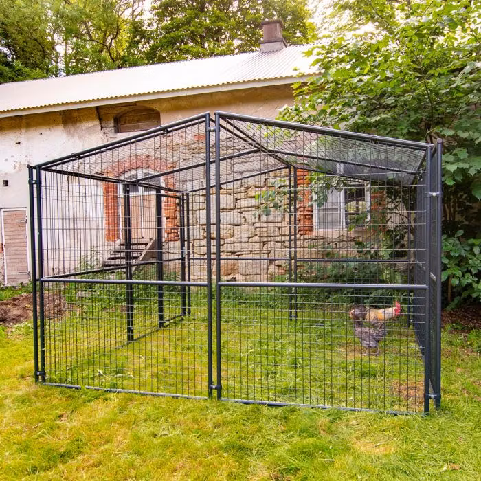 Sidosektion till hönsgård • Tillverkad i helsvetsat nät med metallrörsram