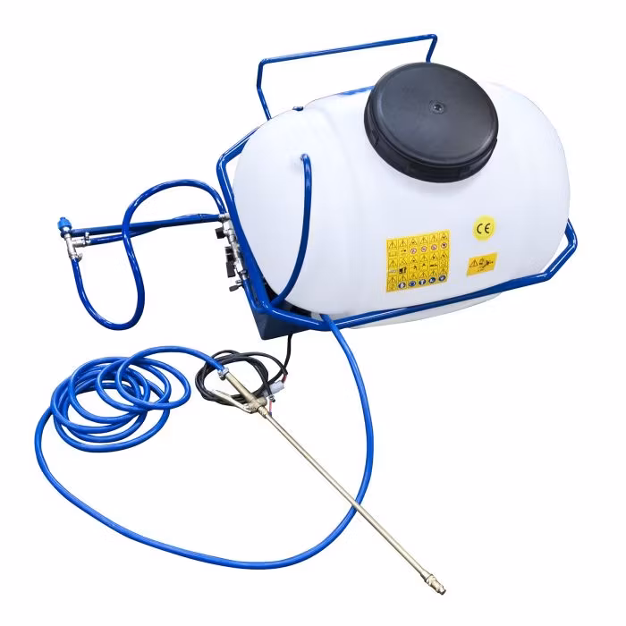 Spruta lämplig för montering på ATV eller vagn • L x B x H 65 x 45 x 55 cm • Pump 12V, 4,8 l/min • Bom med 2 munstycken Kan användas för både bevattning och besprutning. Sprutan drivs av en 12V elpump och har ett justerbart arbetstryck. Tanken är i kraftig Polyeten. Bom med 2 munstycken som sprider över en bredd på 3 meter.