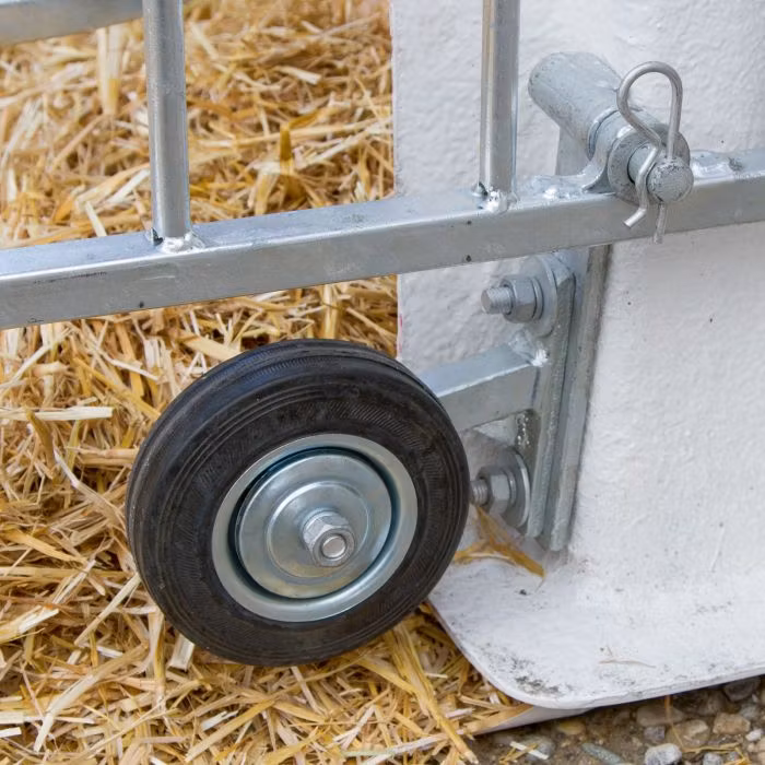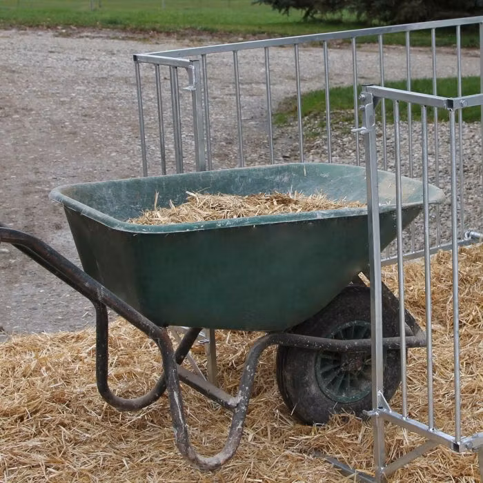 • Hage med två foderöppningar i varmgalvaniserat stål, L x B x H: 150 x 110 x 96 cm