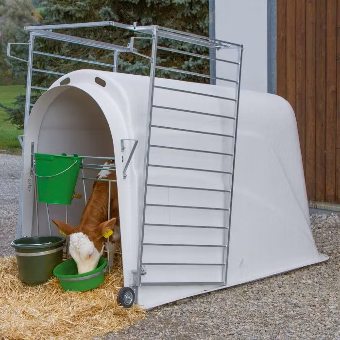 Kalvhydda med förgård till en kalv,12-pack • Hydda: L x B x H: 200 x 115 x 135 cm