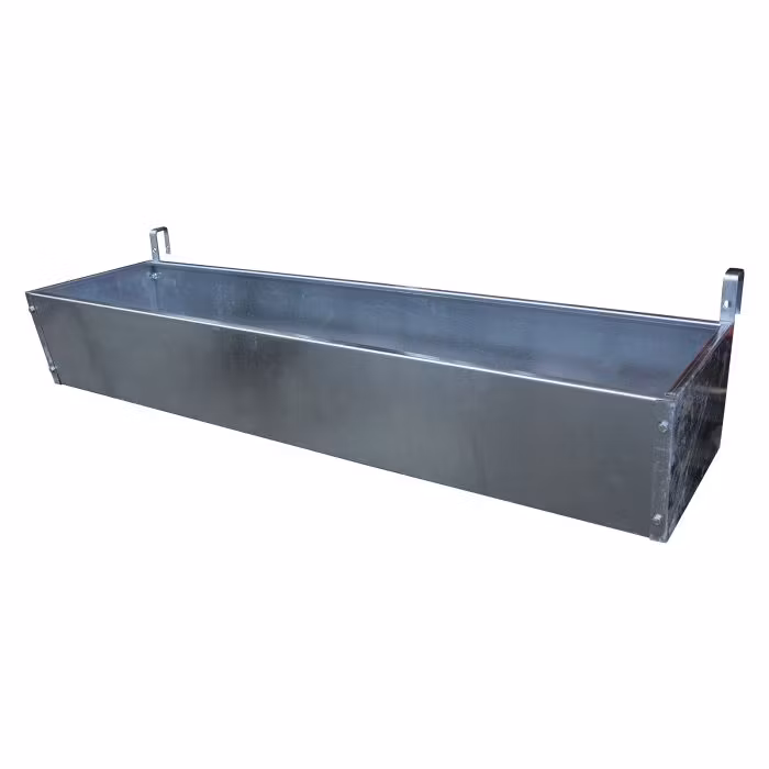Fodertråg till grind, 140 l • Fodertråg 140 l till kraftfoder • För montering på grind • Hål för låsbult i krokarna för säker montering • Varmgalvaniserat • Monteras på grind med max 45 mm rördiameter • Levereras omonterad
