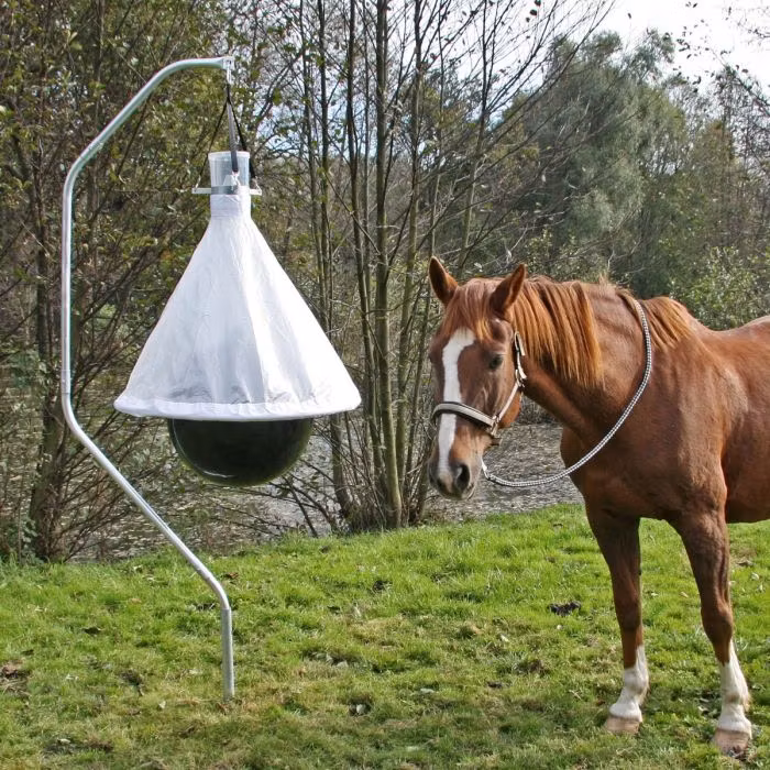 Hjälp dina djur från extremt elaka insekter som förpestar dagarna i hagen. Alternativt kan du använda den närmare bostadshuset för att även slippa broms och blinningar i trädgården. TaonX bromsfälla för häst och nötkreatur är en effektiv och miljövänlig lösning då den minskar och eliminerar broms och blinningar. Insekterna uppfattar bollen i fällan som ett stort djur och flyger dit för att bita. När insektern sen inser att det inte är ett byte så försöker den flyga iväg. En broms och blinning t.ex kan bara starta genom att flyga uppåt och blir då fast i fällan. Man har lite vatten med såpa i behållaren högst upp vilket gör att bromsen drunknar då vattnet genom såpan förlorar sin spänningsyta. Om man vill minska beståndet av broms och blinningar är det viktigt att tidigt på säsongen sätta ut fällor (redan i april i södra Sverige). Genom att göra så förhindrar man att de förökar sig. Bromsen trivs i fuktiga områden så placeringen av fällan bör vara mellan t.ex vattendrag och hage/paddock etc. Placeringen bör också ske där solen gassar så den svarta bollen blir varm ordentligt