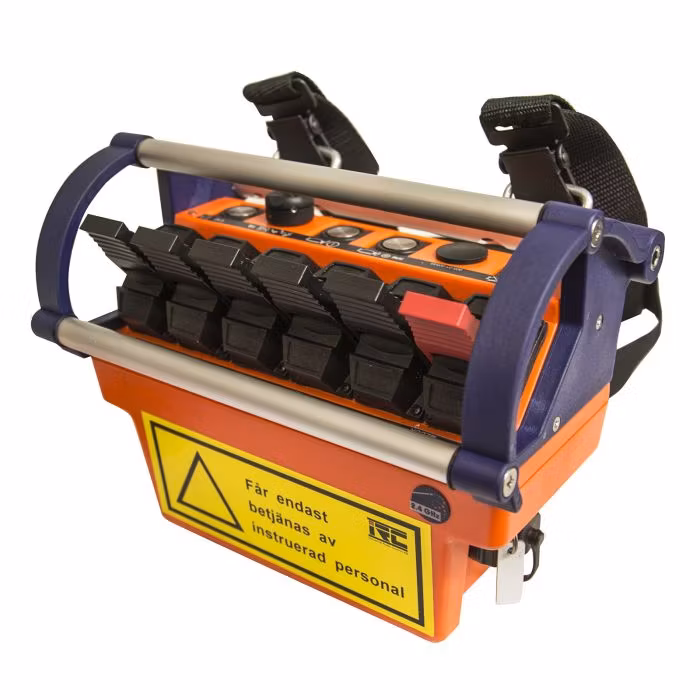 Radiostyrning • HBC Radiomatic Linus 6 • 6-linjära funktioner, varav 5 st används vid styrning av stegmataren • 2 laddbara NiMH batterier medföljer (upp till 20 timmars drifttid per laddning) • Vikt 1,5 kg • Bärrem medföljer • Radiostyrningen är inställd för optimal funktion ihop med Kellfri STM400 Stegmatare • Driftstemperaturområde: -25 – 70 celcius • IP65 skyddsklass • Nödstopp