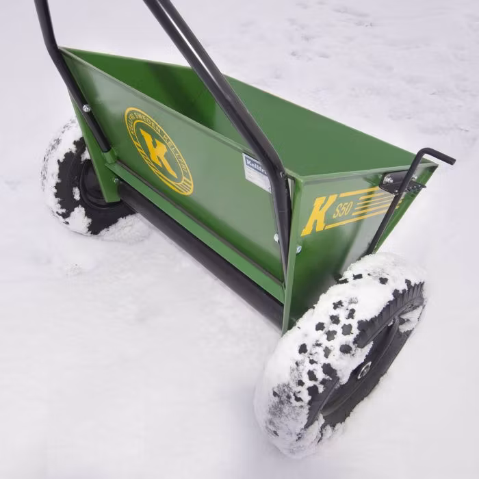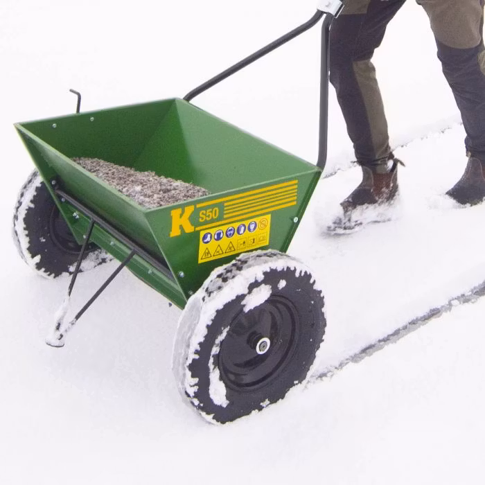 Handdriven sandspridare med behållarvolym på 50 l • Arbetsbredd 60 cm