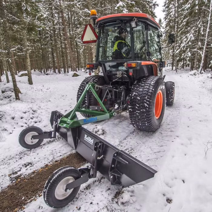 Schaktbladet med kraftigt blad med tre fasta lägen åt båda håll • Arbetsbredd 2,45 m inkl sidovinge • Monteras enkelt på traktorns trepunktsfäste • Bladet kan vridas 360° • Bladet kan ställas in i tre olika arbetsvinklar framåt samt tre olika lägen för arbete bakåt • Sidovinge, stödben, stödhjul och sprintar till lyftarmarna som standard Schaktblad med en total arbetsbredd på 2,45 meter inkl sidovinge som trycker ut snön längre i diket. Vingen är lätt att montera av för andra arbeten som sladdning av grusvägar gårdsplaner mm, bredden på slitstål blir då 2,0 m. Kellfri Schaktblad 210S är ett mycket robust schaktblad som enkelt monteras på traktorns trepunktsfäste. Bladet kan vridas 360° och kan ställas in i tre olika arbetsvinklar framåt samt tre olika lägen för arbete bakåt. Stödhjulen monteras enkelt med sprint och är justerbara i höjdled för att få rätt arbetshöjd och vinkel på bladet vid snöröjning. Extra bra funktion på mark där det inte finns tjäle, sladdning av grusvägar och andra justeringsarbeten. Schaktbladet levereras med sidovinge, stödben, stödhjul och sprintar till lyftarmarna som standard.