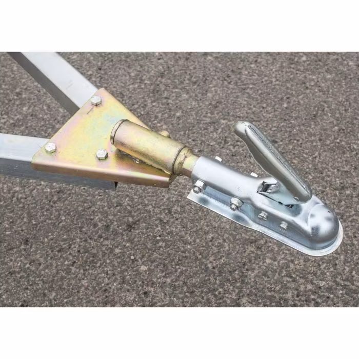 Vägsladd ATV har kraftiga hjul, helgalvad stabil ram med belastningslåda för halvpall och 50 mm vridbar kulkoppling.