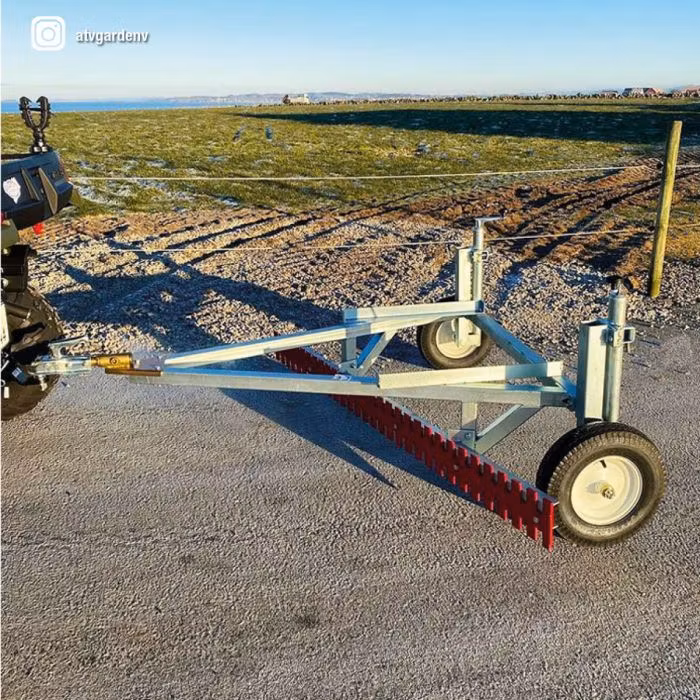 Väghyvel med vändbart rivstål till ATV eller mindre traktor, snedställt stål samt individuellt inställbara hjul för att kunna justera vägvinkeln.