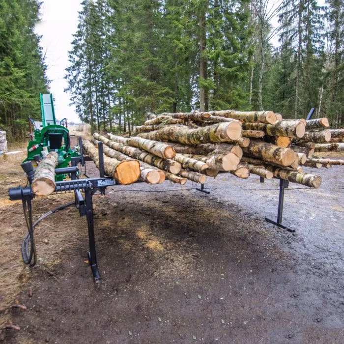 Optimera din vedbehandlingsprocess med vårt hydrauliska stockmatarbord. Anslut det enkelt till din vedprocessor med hydrauluttag för smidig och säker inmatning av trä. Välj din önskade sida för montering av taggrullen och säkerställ effektiv matning till vedmaskinen. Även utan hydrauluttag kan du använda det som ett manuellt matarbord.