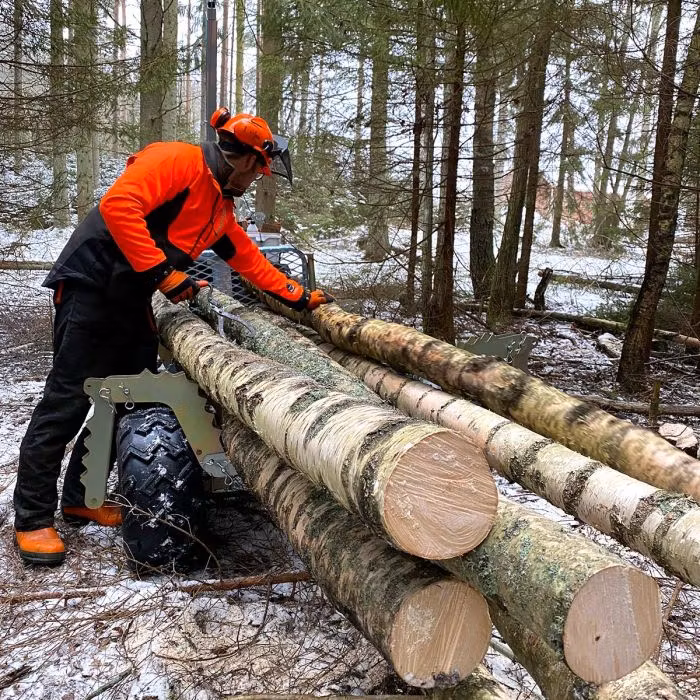 "Som skogsbrukare vill och kan man inte alltid dra fram den stora timmerkärran och traktorn om man vill komma in i trånga utrymmen och/ eller bara behöver köra ut några stockar. Då är denna vagnen till fyrhjulingen ett jättebra alternativ som man har stor nytta av i skogen. Och det är minst sagt roligt att åka ut med den!"